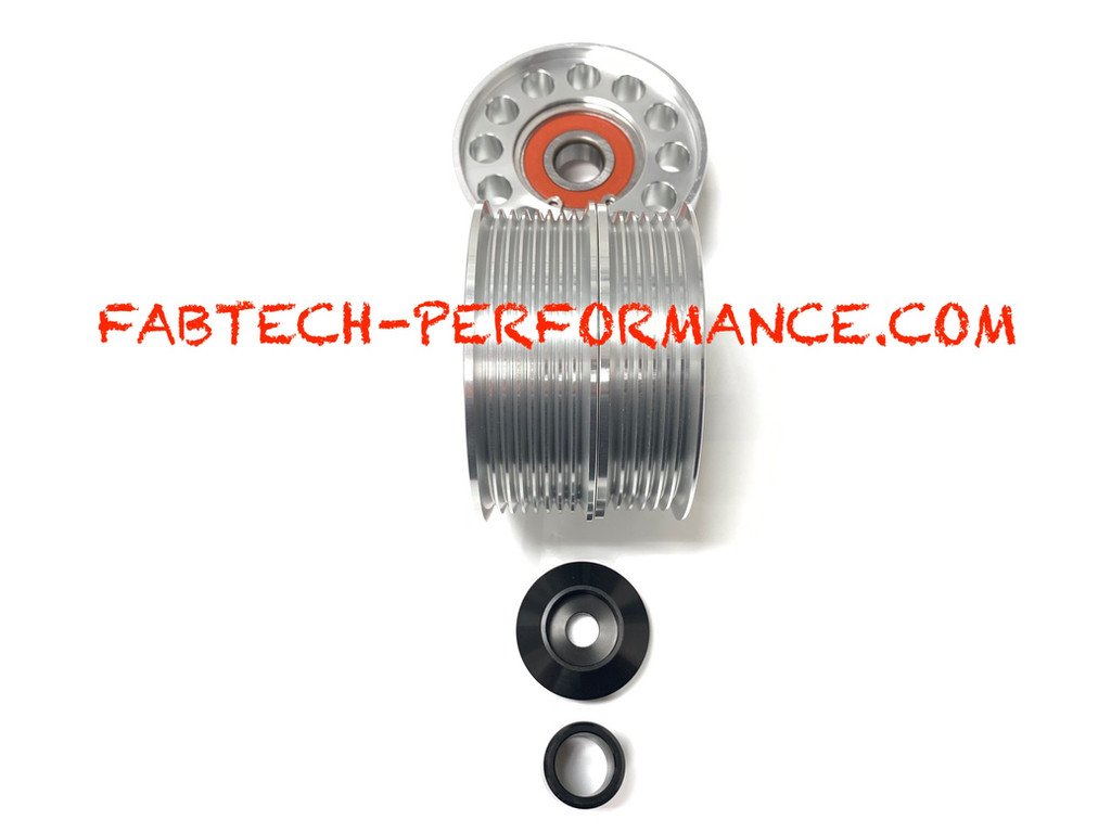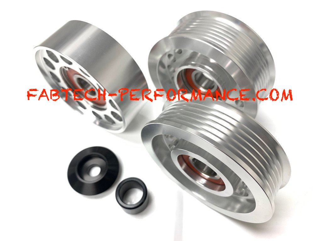 FTP Introduces our all new Designed and assembled in House 3 Piece M113K  Performance idler Pulley Set! Our 3 Piece Idler Pulley set is constructed from T6 6161 Billet Aerospace aluminum, on a 5 axis CNC. We then ensure the highest quality by removing tool marks and Hard Coat CLEAR anodize the entire pulley. We finish the pulleys with Genuine NACHI ZZ Rated Bearings. This Kit Includes all pulleys needed to replace the factory plastic idlers/tensioners on your 2003-07 55K AMG. These Pulleys are made to outlast your AMG.