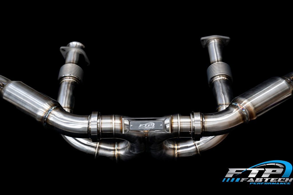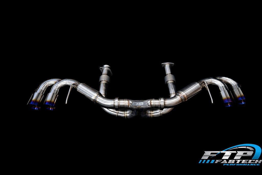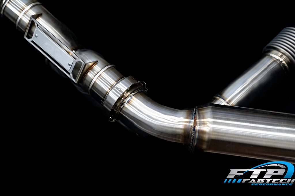 Fabtech Performance introduces our latest engineering masterpiece for your 2020+ Corvette C8 equipped with the Mid engine LT2 . All I have to say is WOW. This system far exceeded our expectations! Constructed from 304 Aircraft Grade Brushed Stainless Steel, Precision tig welded to perfection. We have sourced the highest quality materials available in the industry for this exhaust. A complete Replacment from Cats to Tips with no Modificaiton or drilling required. Direct Replacment of Factory system. Fully Reversable back to stock.